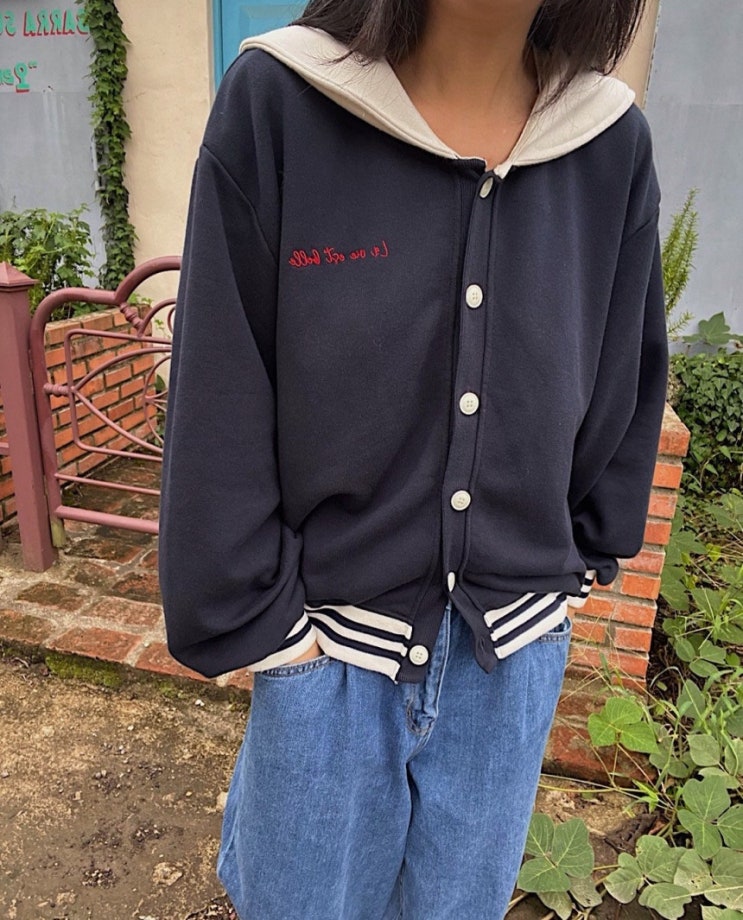 세일러 자수 가디건 / 쭈리 배색 / 타임투샤인