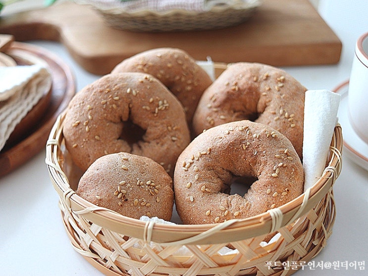초간단 통밀베이글 통밀빵 쫄깃한 베이글 만들기 에어프라이어 베이킹 겉은 바삭 속은 쫄깃하게 구워낸 베...