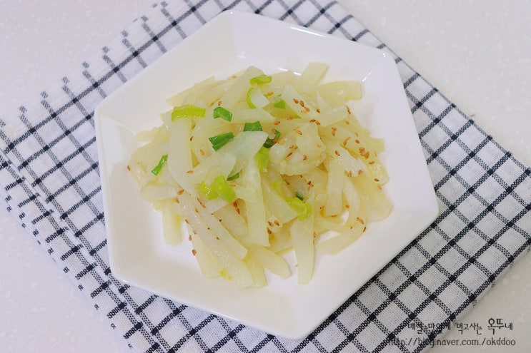 명절음식 무나물볶음 만드는법 고소한 들기름 요리
