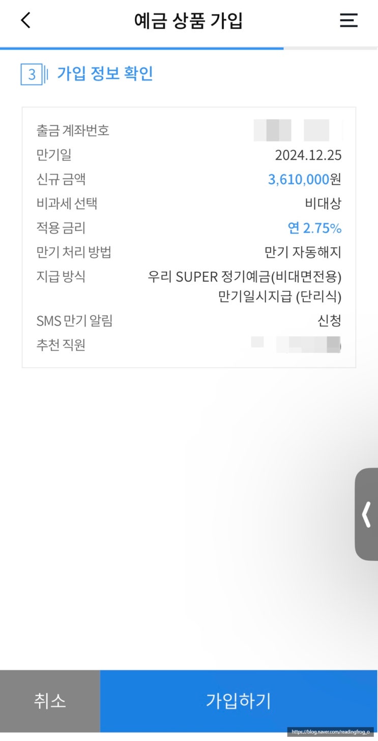 우리은행 1개월 예금 가입 (+이율 2.75%)