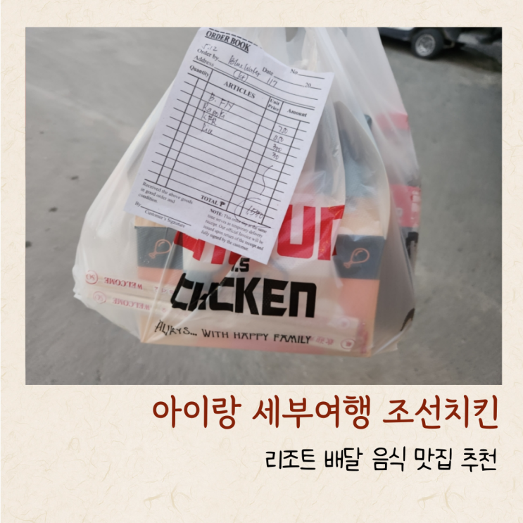 세부 여행 아이랑 조선치킨 리조트 배달 음식 맛집 추천 글/사진 쏠라리리 아이랑 세부여행을 다녀왔어요! ...