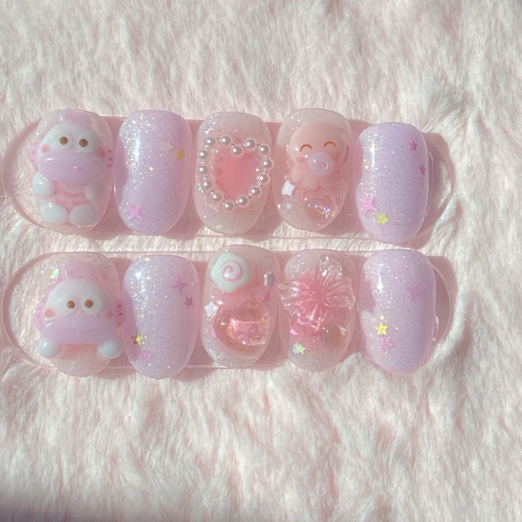 수제네일팁 핑크 한교동 엠보 네일 디자인