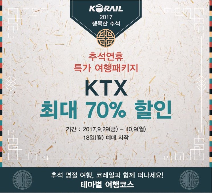 코레일‘추석 특가 패키지 여행상품’인기 질주! - 출시 10일 만에 1만매 판매 돌파 - KTX와 카셰어링 ...
