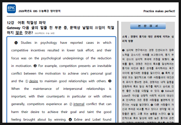 2026 EBS 수능특강영어 25강 좌지문 우해석 25강 교육, 학교, 진로 25-1 다음 글의 제목으로 가장 적절...