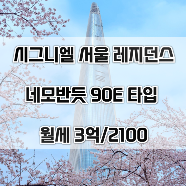 시그니엘 서울 레지던스 90E타입 월세 즉시입주가능