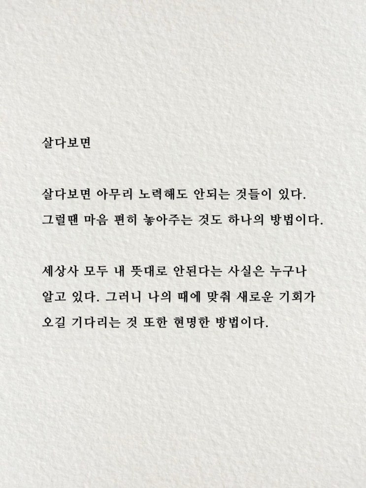 살다보면 살다보면 아무리 노력해도 안되는 것들이 있다. 그럴땐 마음 편히 놓아주는 것도 하나의 방법이다...