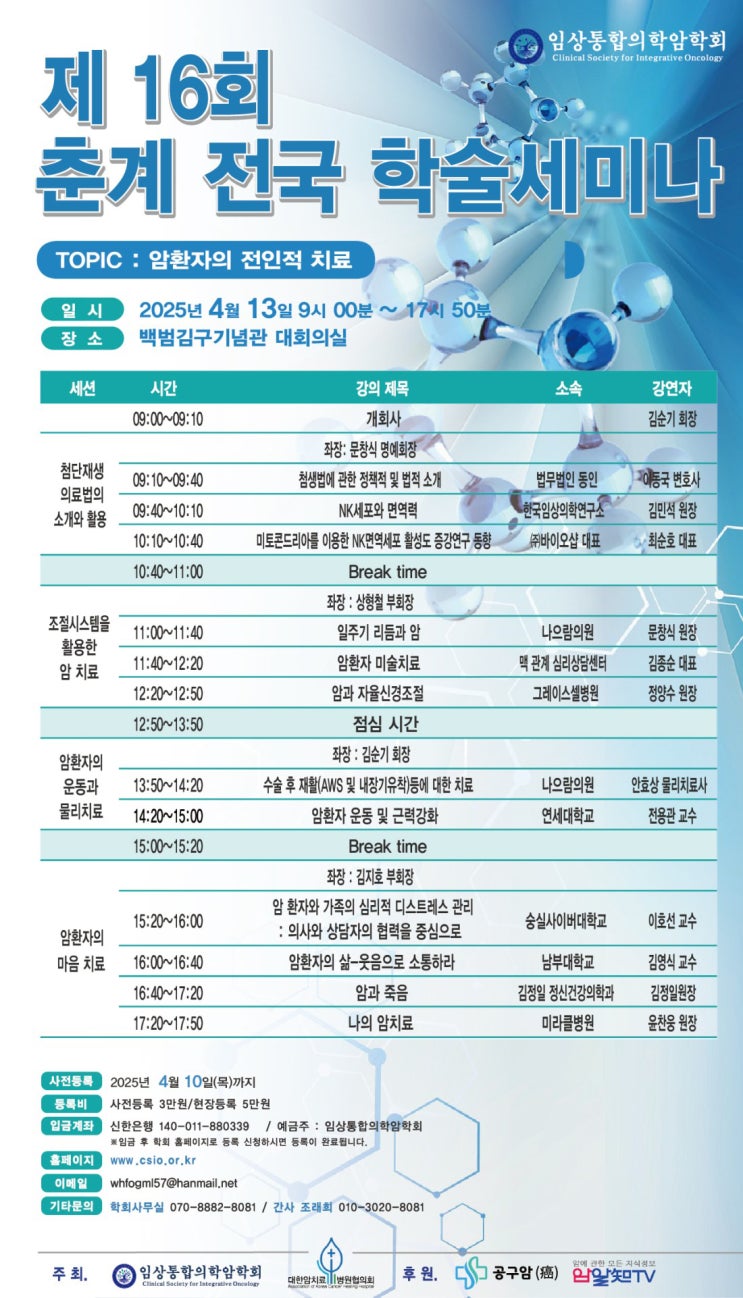 암의 치료에서 극복까지, ‘암 환자의 전인적 치료’, 임상통합의학암학회 제16회 춘계 전국 학술세미나 실시