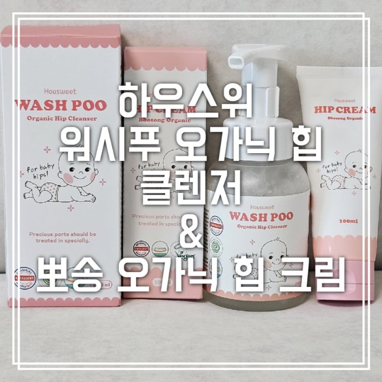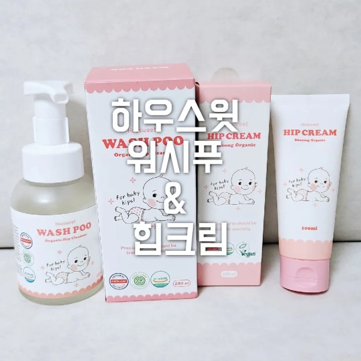 하우스윗 워시푸 오가닉 힙 클렌저, 뽀송 오가닉 힙 크림으로 우리아이 엉덩이를 지켜줘요.