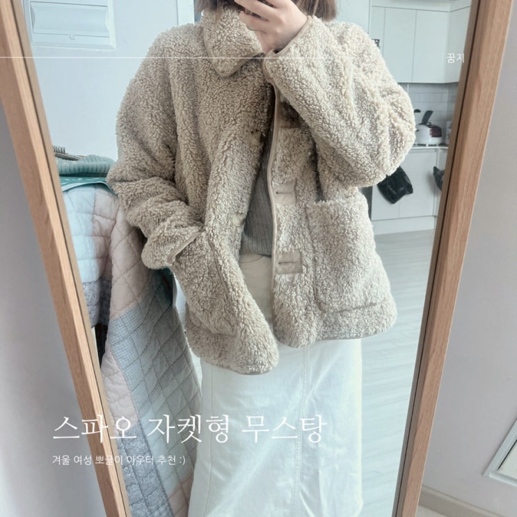 스파오 자켓 비건 가죽 무스탕 여성 봄코디