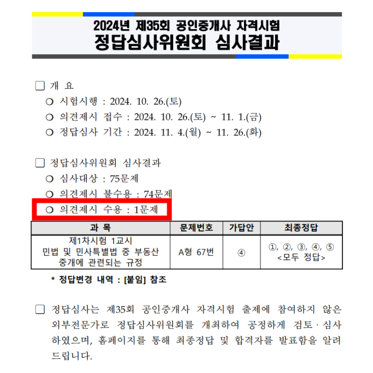 35회 공인중개사 이의신청, 합격률 정리 2024.10.26 시행된 제35회 공인중개사 시험이 끝나고 난 후 이의제...