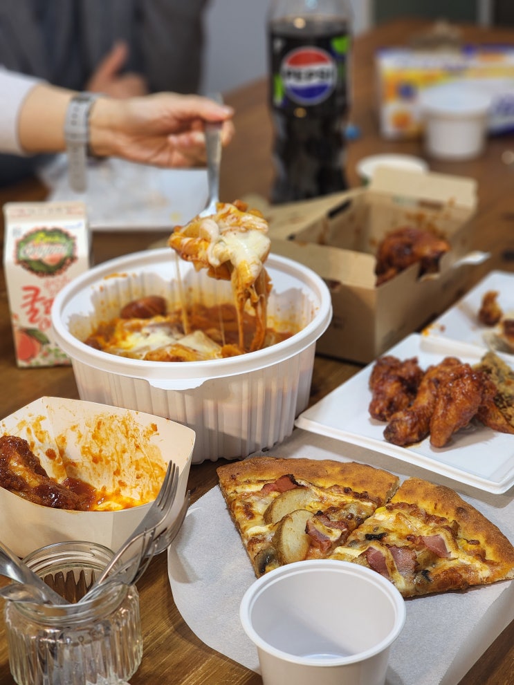 2003년 양띠맘 엄마들... 많은 배달음식을 먹다말고 휴대폰을 들이밀었다. 이런 사진은 찍어둬야 된다고......