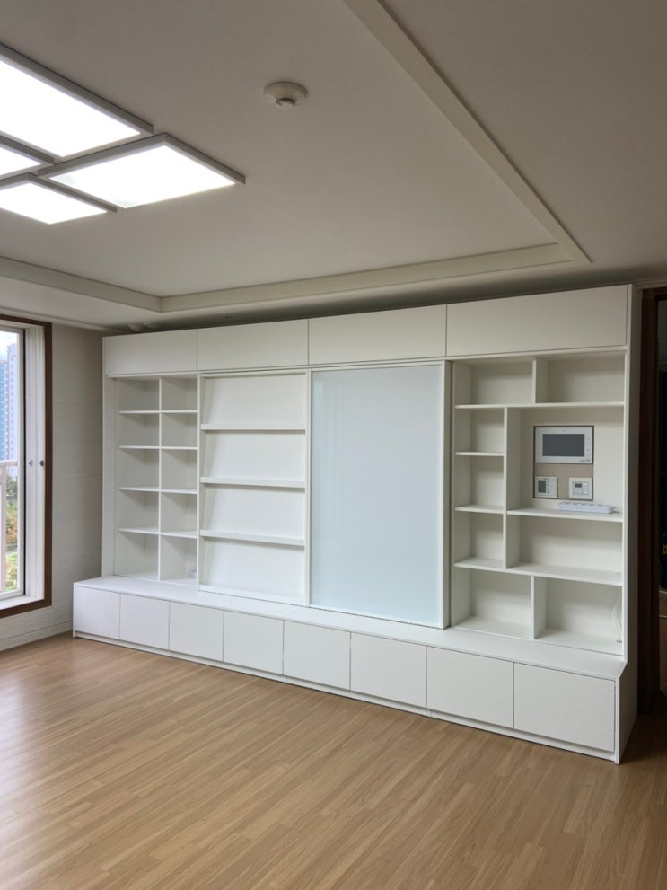 수원 거실서재화 - 한양수자인 파크원 거실전면책장 설치