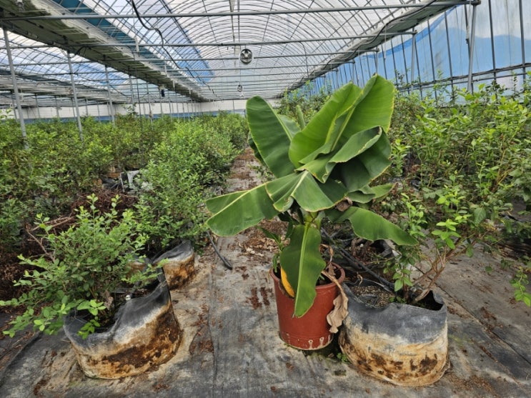 고을농장 바나나 어린나무 심어 이만큼 크게 자랐습니다