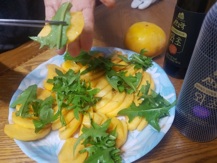 태추단감 과 민들레잎 그리고 단감발효식초 함께 드시면 건강에 좋은 음식