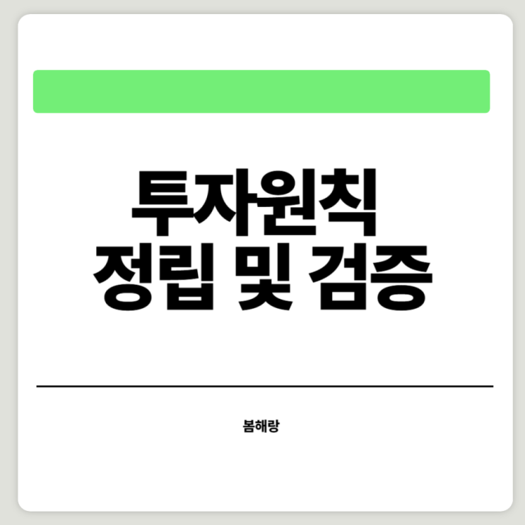 안녕하세요 봄해랑입니다 저번 포스팅에 이어 투자원칙 정립 및 검증을 해보겠습니다 투자 원칙 인구 수 : ...