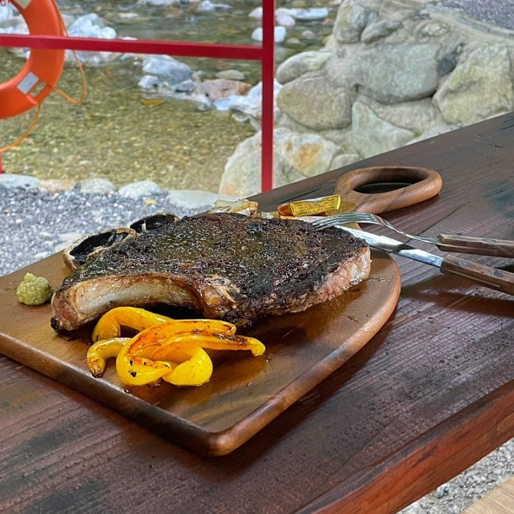 충북 영동 물한계곡민박 평상 대여해서 토마호크 먹기