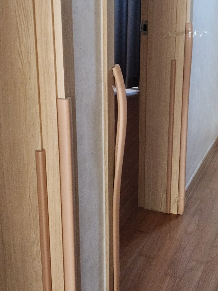 베이비룸을 허물면서 아기가 이곳저곳 집을 탐색하기 시작했다. 아직 14개월, 조심성이 없는지라 문 모서리...