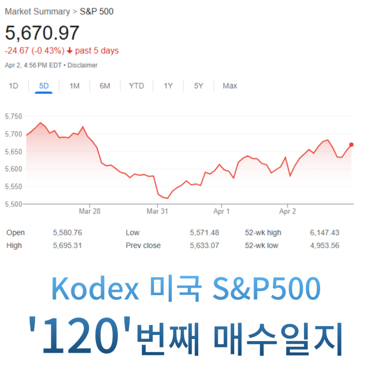 Kodex 미국 S&P500 '120'번째 매수일지