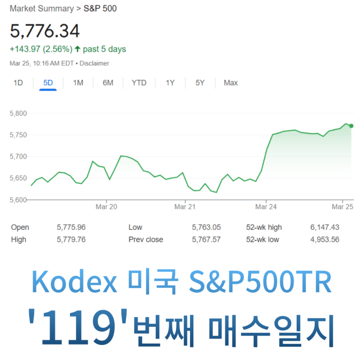 Kodex 미국 S&P500 '119'번째 매수일지