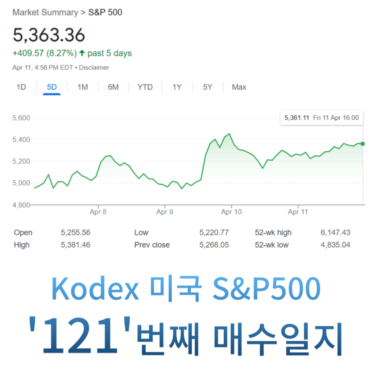 Kodex 미국 S&P500 '121'번째 매수일지