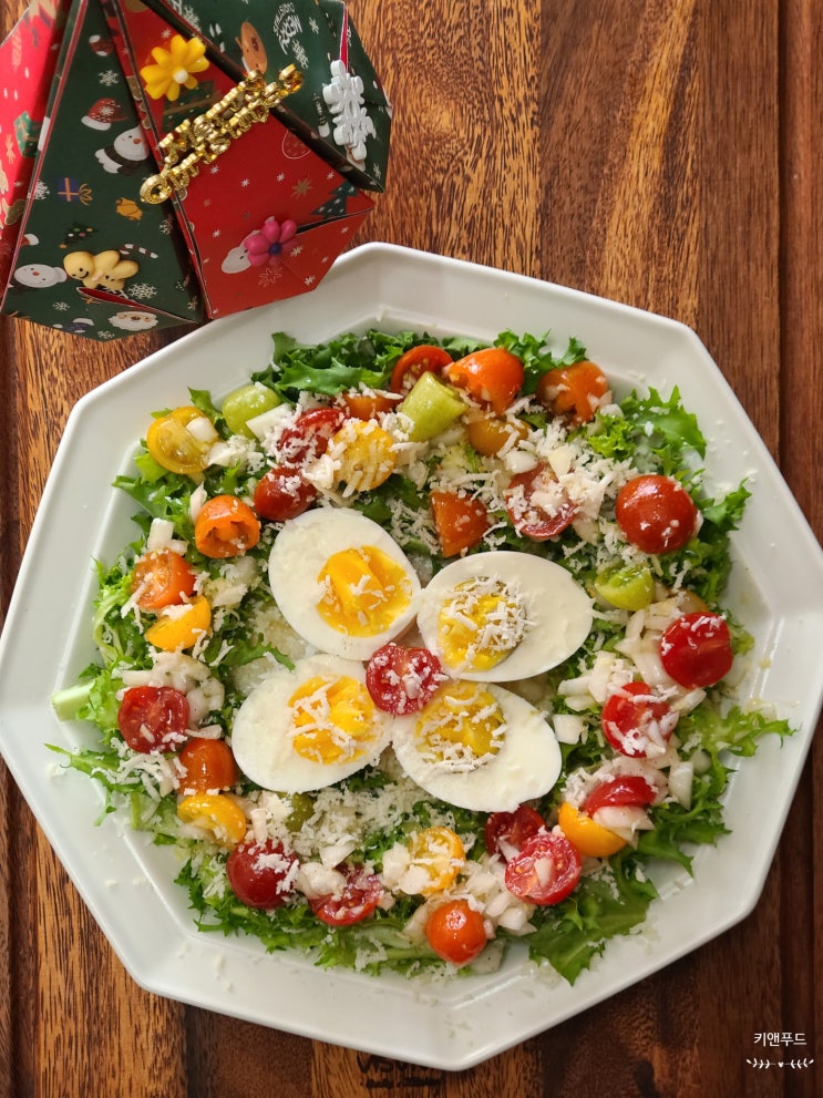 크리스마스리스 샐러드 만들기 치커리컬러방울토마토 샐러드