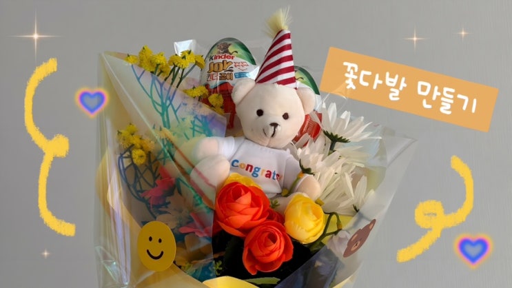 손재주 없어도 만드는 어린이집 수료식 다이소 킨더조이 꽃다발 만들기 꿀팁