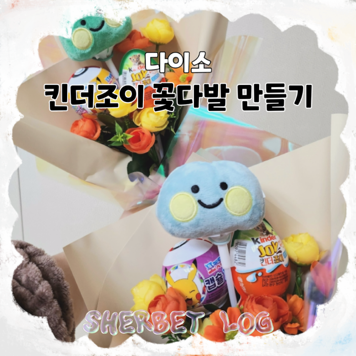 다이소 킨더조이 꽃다발 만들기 춥파춥스 사탕꽃다발