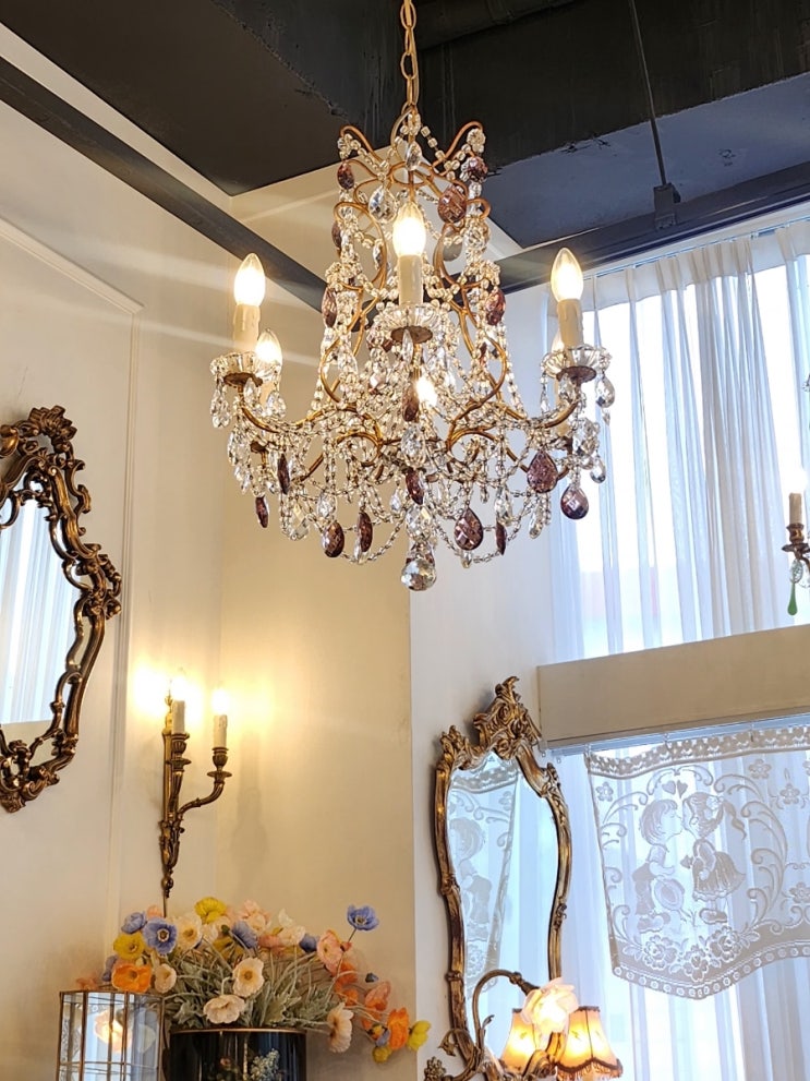 프랑스 크리스탈 6구 샹들리에 19세기 후반~20세기 초 프랑스 스타일의 정통 앤틱 샹들리에입니다. 무게감 ...