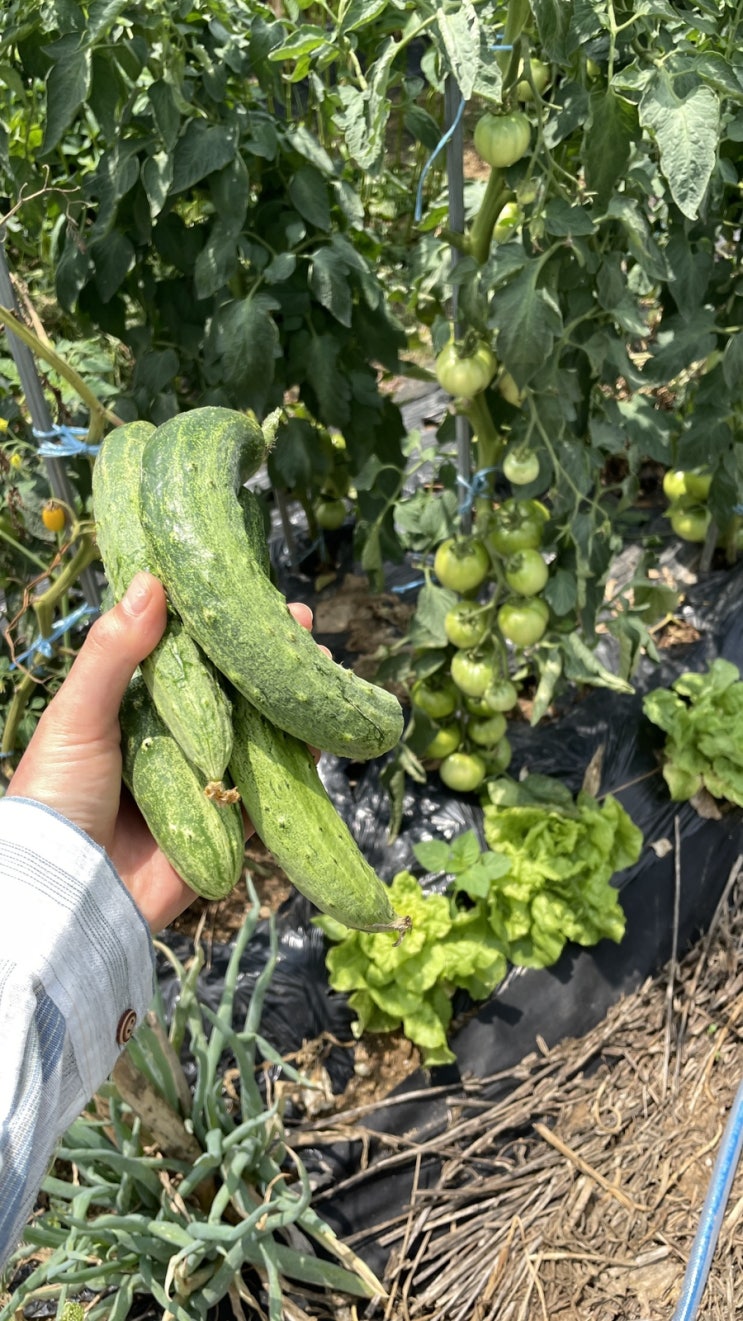 월 엄마가 밭에 핸드폰을 두고왔다고해서 자전거 타고 다녀왔다 싱그러운 채소들, 포도같은 토마토 반짝이...