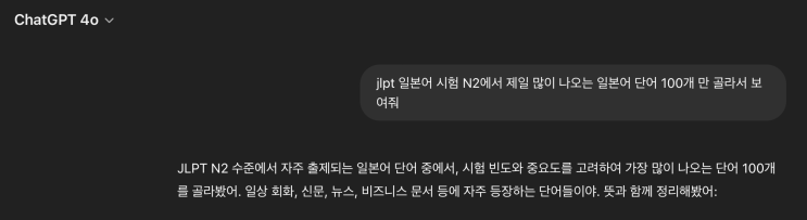 ChatGPT4 에게 JLPT N2에 가장 많이 나오는 단어 100개를 물었다.