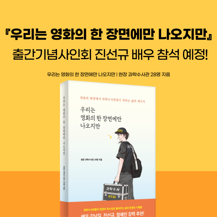 KCSI 현장 과학수사관 에세이 『우리는 영화의 한 장면에만 나오지만』 출간 기념 사인회 진선규 배우 참석 예정!