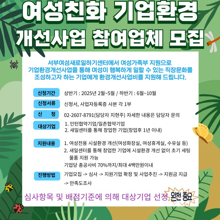 2025 경력단절예방지원사업 [여성친화 기업환경 개선사업 참여 업체 모집] 1. 사업내용 여성 전용 시설 및 ...
