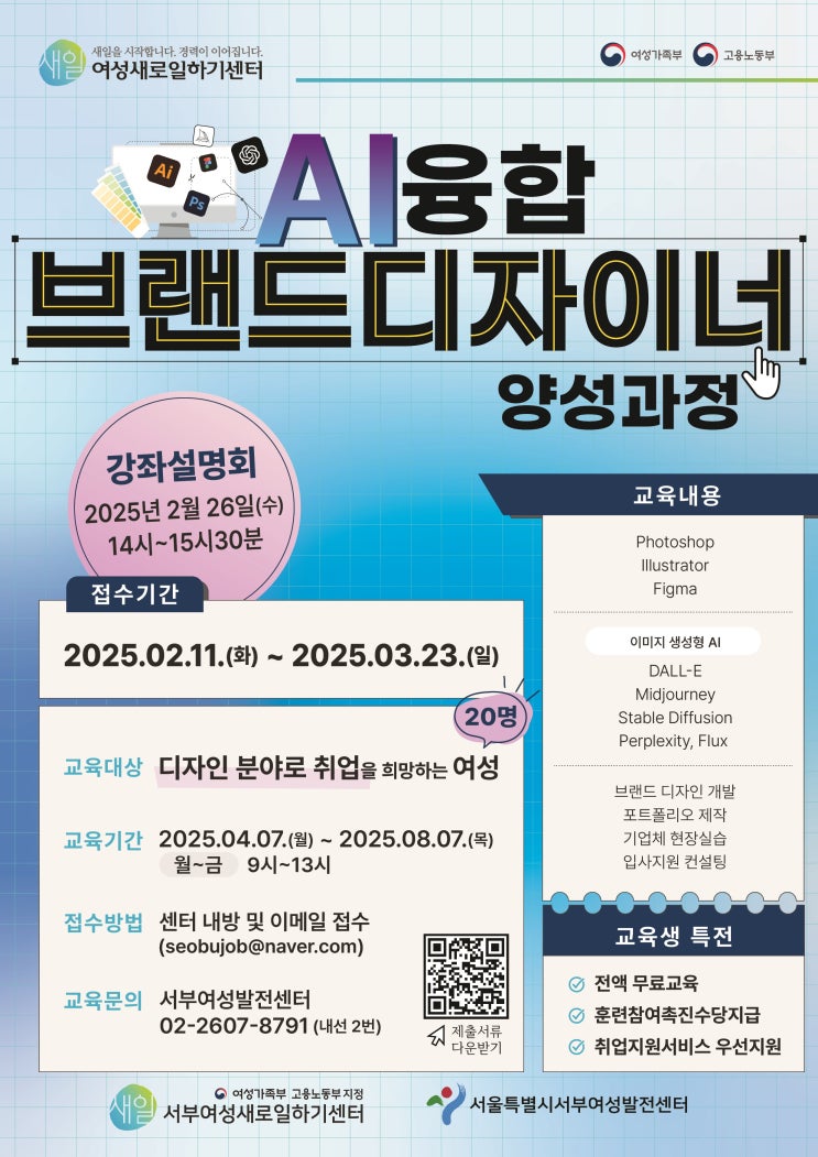 [모집] 서부여성발전센터 『2025년 여성가족부 지원』 "AI융합 브랜드디자이너 양성과정" 교육훈련생 모집! #브랜드디자이너#디지털TOOL#AI디자인