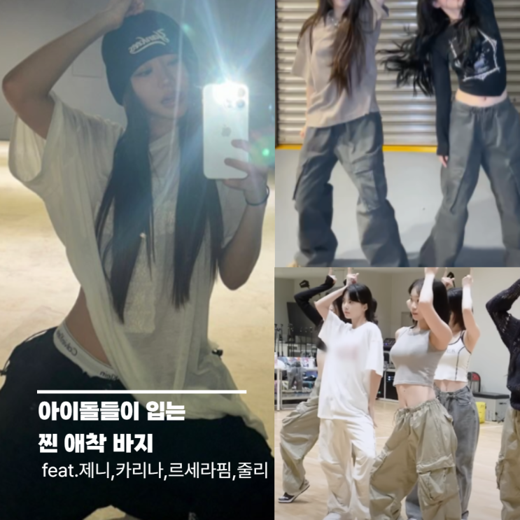 아이돌들이 입는 찐 애착 바지 에즈이프컬리의 워시페러슈트 카고 팬츠 카리나뿐만 아니라 아이들멤버들이 ...