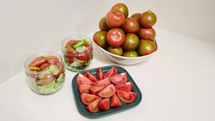 토마토가 맛있는 계절입니다 장 보면서 한 박스 사 와서 아침에 식사 대용으로도 먹고 간식으로도 챙기고 ...