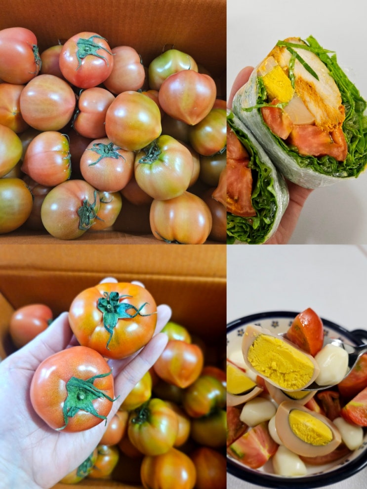 토마토가 맛있는 계절입니다 장 보면서 한 박스 사 와서 아침에 식사 대용으로도 먹고 간식으로도 챙기고 ...
