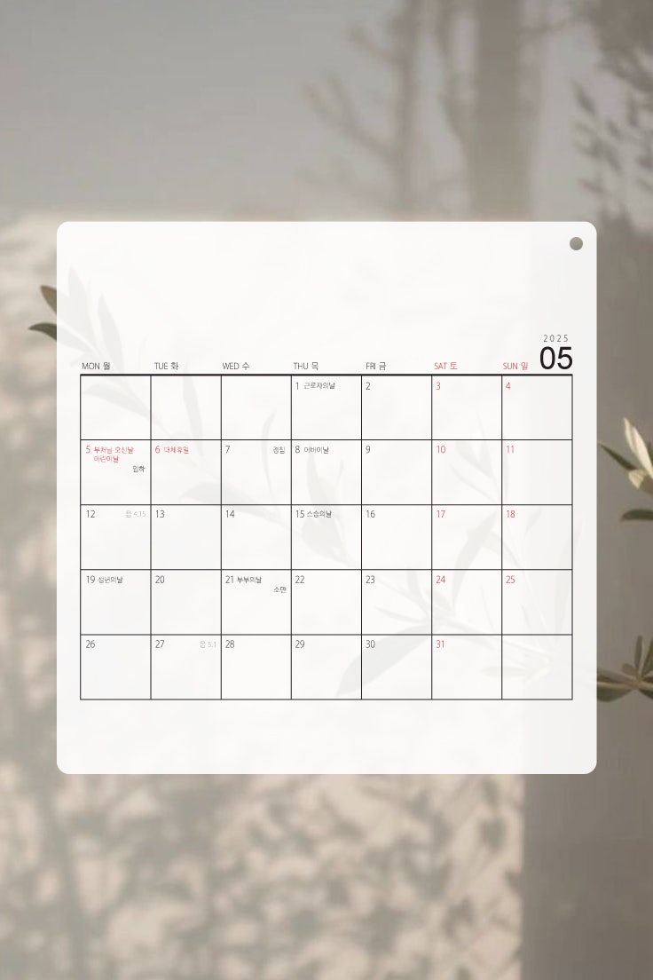 2025년 5월, 6월 달력 이제 진짜 봄이 올건가 봅니다. 이번에도 월 - 일 순서로 달력을 만들어봤습니다. 필...