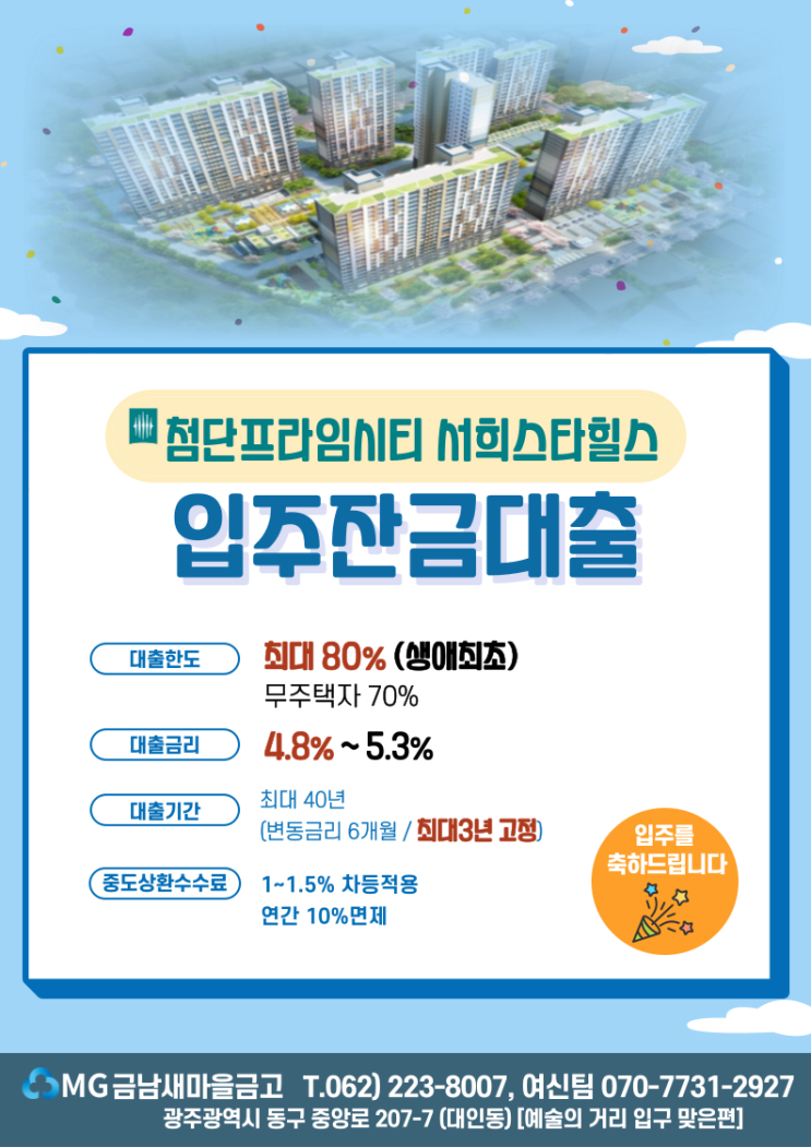 첨단프라임시티 서희스타힐스 입주잔금대출 금남새마을금고에서 ~