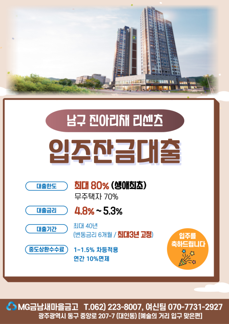 남구 진아리채리센츠 입주잔금대출 금남새마을금고 ~
