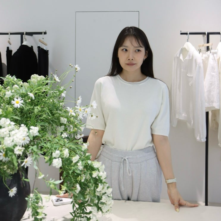 여성 반팔 니트 새미보이트 봄 여름 데일리 코디 추천