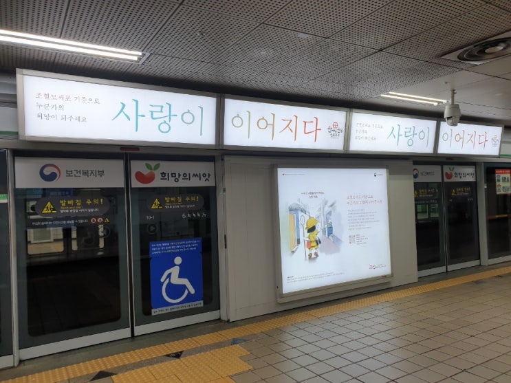 스크린도어 상단은 조혈모 세포/ 기증으로/ 사랑이/ 이어지다로 하면 좋았을.
