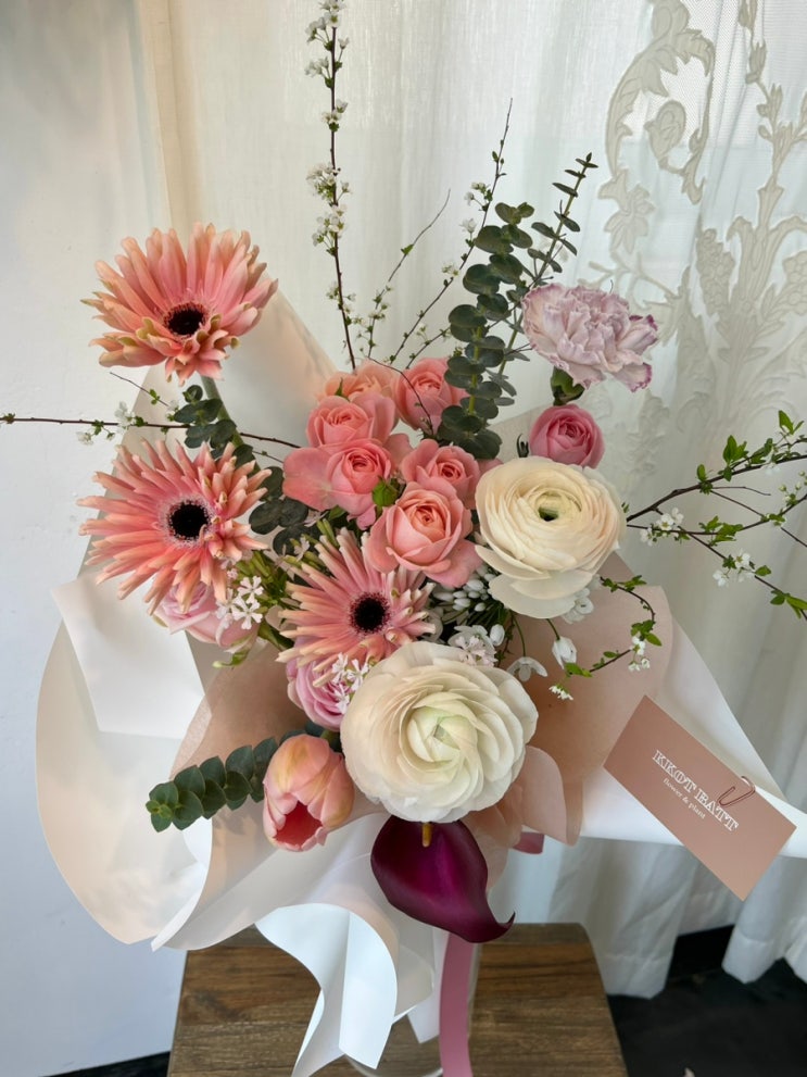최근 인스타그램 피드에 있는 사진보시고 많은 문의와 예약주셨던 거베라 넣은 핑크파스텔 꽃다발! 파스타...