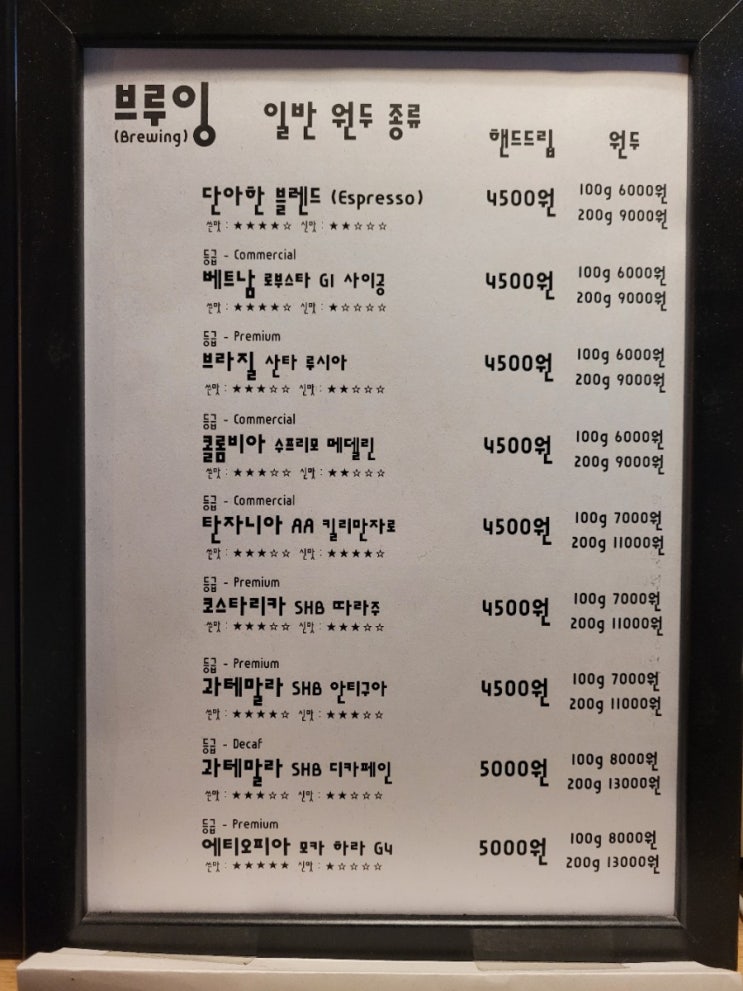 부평 로스터리 카페 단아한베짱이 2020.11.09 원두 종류 15종 단아한블렌드 브라질 산타루시아 베트남 로부...