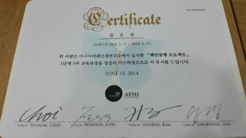 아시아 미래인재연구소 '백만꿈행 프로젝트' 1단계 자격증 땄습니다~♡♡♡