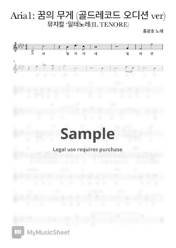 Aria1: 꿈의 무게 악보 (골드레코드 오디션 ver)(홍광호 노래 / 가사 및 코드 첨부) - 뮤지컬 ‘일테노레(IL TENORE)’