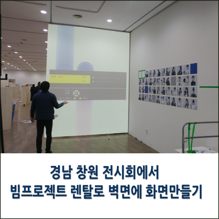 경남 창원의 전시회에서 빔프로젝트로 벽면을 분위기 있게 만드는 이야기