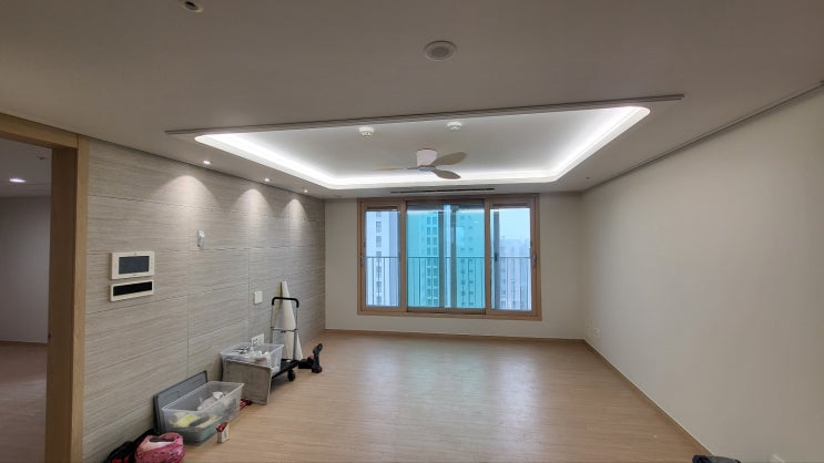 청주 가경동 자이아파트 입주하시는 고객님 거실 실링팬 우물간접등 및 현관 욕실 간접등 설치 공사입니다....