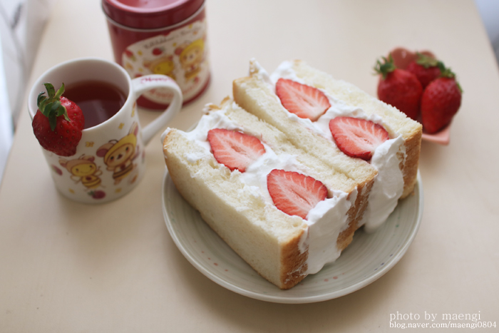 딸기딸기해~ 딸기생크림샌드위치와 딸기케이크 (with 카렐차펙 리락쿠마 해피티타임 스트로베리티)