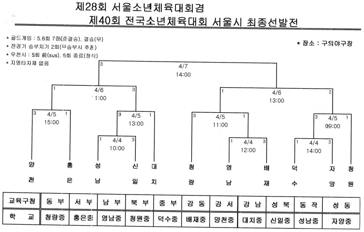 제40회 전국소년체육대회 서울특별시최종선발전 대진표