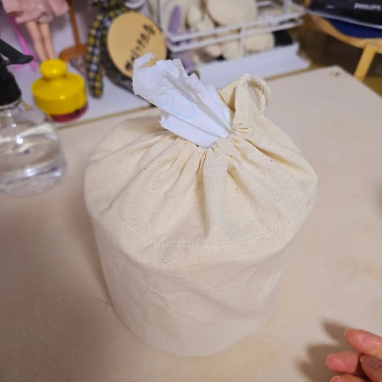 이번에 만든 작품(?)은 두루마리 화장지 케이스! 바닥이 원형인 파우치를 만들고자 했는데 눈에 딱 띄인 애...